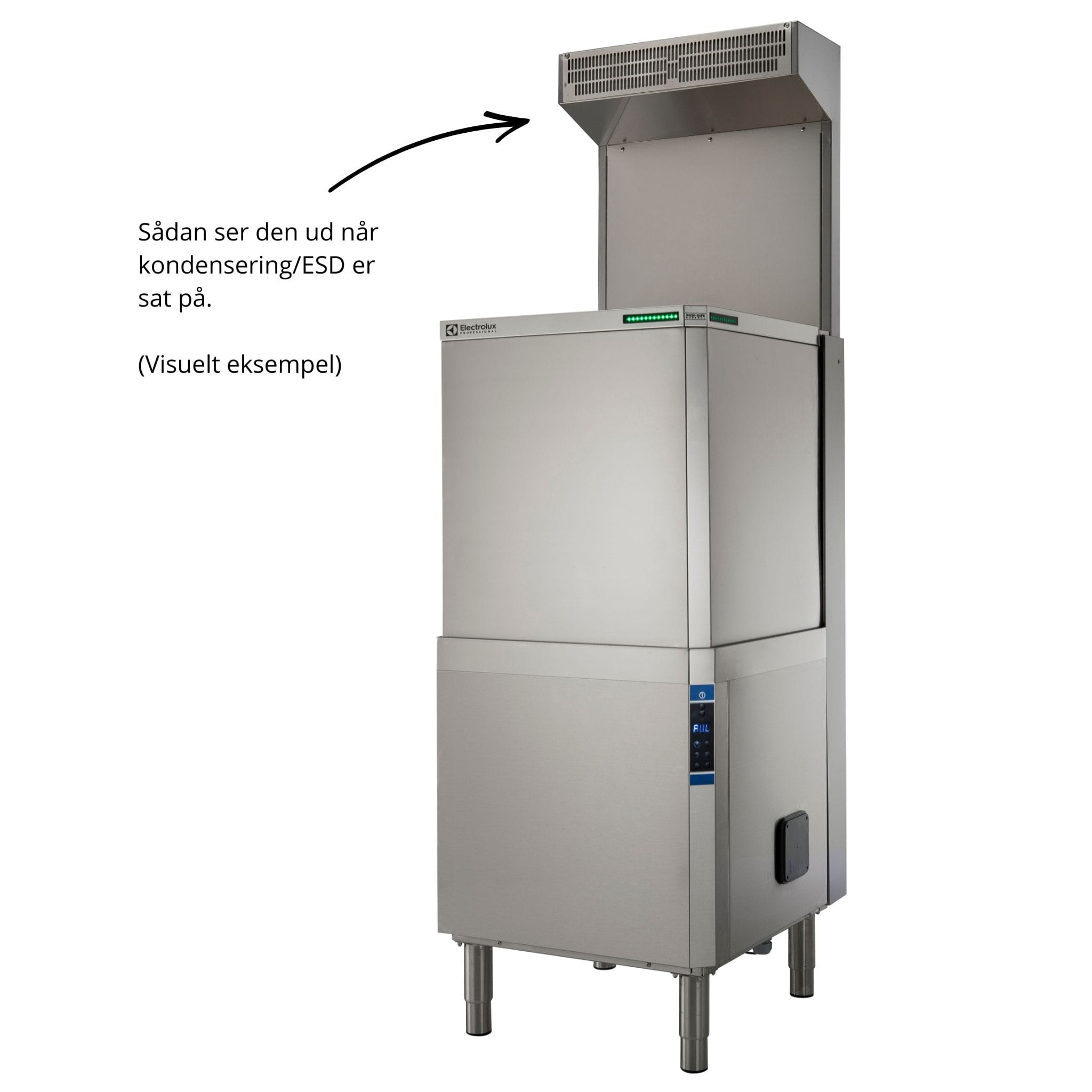 Hætteopvaskemaskine med kondensering/ESD og isoleret hætte, automatisk hætteløft, afspændings- og afløbspumpe